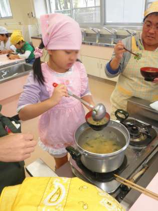 出来上がった味噌汁は、とっても美味しいようです。みんなおいしいので、どんどん