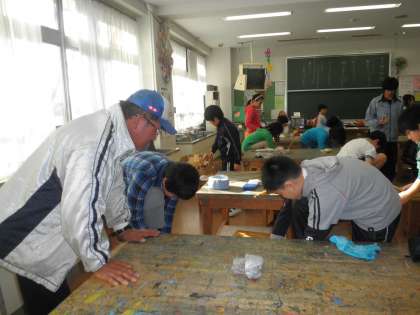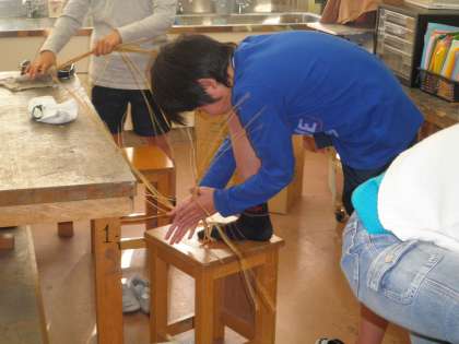 今日は、5年生が、上祖師谷郷土研究会の方にわら細工を教えてもらっています。