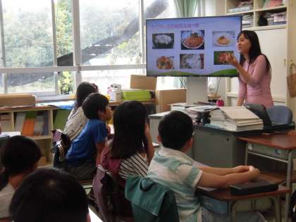5年生では、総合的な学習の時間で「世界の国々の人と交流しよう」という学習を行っています。今回は、国際機関日本アセアンセンターにご協力いただき、ミャンマーとインドネシアの方にゲストティーチャーとして授業を行っていただきました。