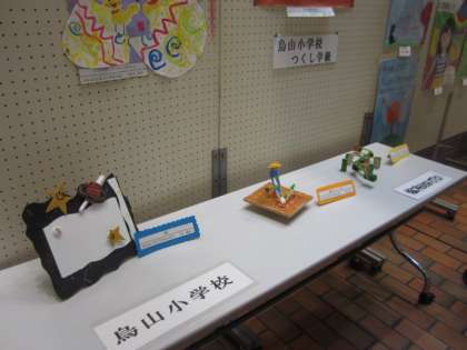 10月13日、14日の2日間、「烏山区民センター文化祭」が催されました。学校部門の作品展示に、烏山小学校から各学年1点、7点の作品が展示されました。13日に、その表彰式があり、代表児童に教育長から表彰状が渡されました。