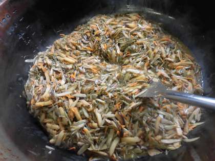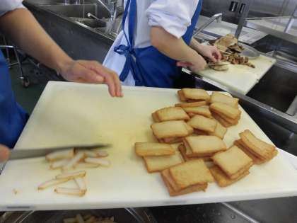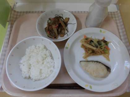 ☆本日の給食は『刻みこんぶの五目煮』です。にんじん・さつま揚げ・糸こんにゃく・干ししいたけ・ごぼう・刻みこんぶの食材を使用した煮物です。給食室の大釜で煮込みました。ごはんと一緒に食べると美味しいですね!