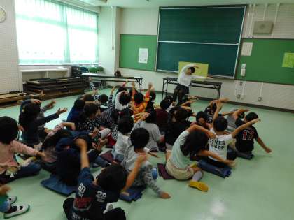 今日は月に1回のお楽しみの日。おはなし泉の方による「おはなし会」でした。いつも、季節にあったお話や聞いたことのない昔話を聞かせていただき、子どもたちとともに教員も楽しみにしています。