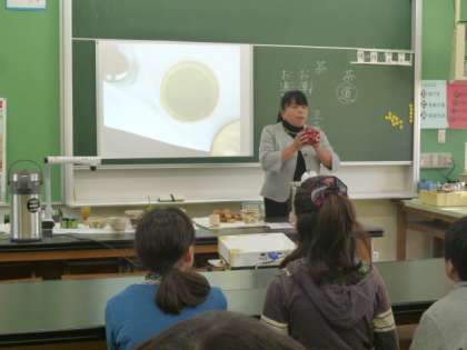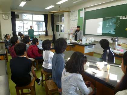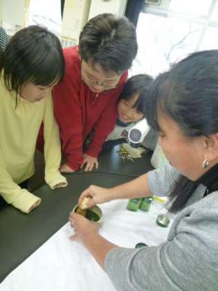 副校長先生が、茶道についてのお話をして、それから実際にお茶を点てている様子を