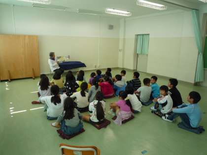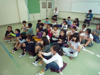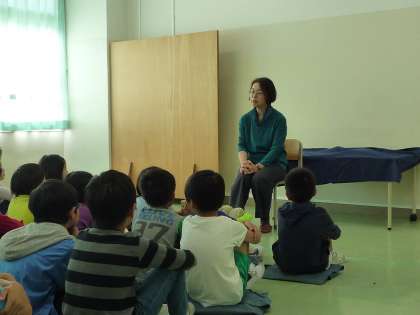 「あるのかな」の絵本の読み聞かせ、「なら梨とり」「おばあさんとブタ」「森のおばあさん」のお話を聞かせていただきました。途中には手遊び歌を教えていただいたり、充実した時間となりました。次回は、3学期に行われます。楽しみですね。