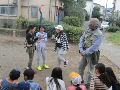 仙川では、6月と比べて、緑が少なくなったり、花が咲きいろいろな色が見えるようになり、鮮やかになったりすることなどに気付きました。また、給田公園では、ペアで用意していただいたケースの中に、葉っぱや虫などを入れて、秋らしい様子を表現し、発表しました。講師の方に、子どもたちが見つけた植物や虫など、一つひとつ丁寧に説明していただきました。子どもたちにとって、とても貴重な体験になりました。