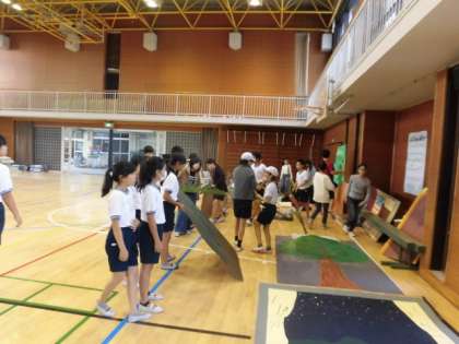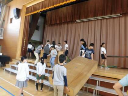 この日の6校時、6年生が体育館の物品を搬出して、学芸会の会場設営をしました。
