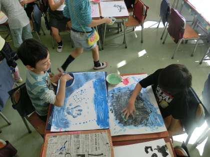11/1 1年生 図工「てでさわってかくのきもちいい!」