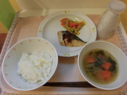 ☆今日の給食は『鰆のかわりソースかけ』です。魚にかけたソースは砂糖、ウスターソース ごま油 酒 長葱が入っていて、給食室の大釜で作りました。少し甘めのソースができ、焼いた魚の上にかけて出来上がりです!!