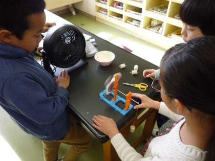 11月の理科は、ゴムのはたらきと風のはたらきを学習しています。