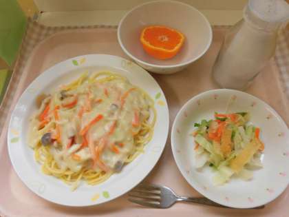 ☆今日はきのこをたくさん使用した『きのこスパゲティー』です。きのこ嫌いな子どもにも食べやすく調理しました。