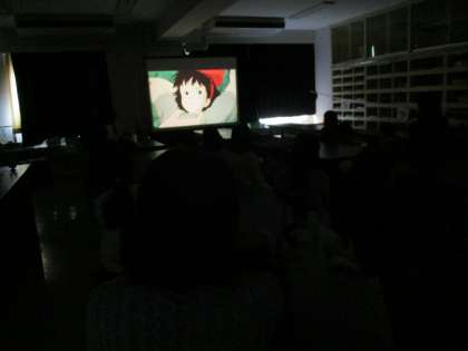 24日土曜日は、図書館開館日でした。本日は、初めての試みで10時より、16mmフィルム「魔女の宅急便」の映画会を開きました。司書により本の紹介や原作者「角野栄子さん」についてお話があった後、映画会が始まりました。DVDとは違って、カタカタとフィルムを送る音とともに大きなスクリーンに映像が映し出されていました。小学生、保護者の方や未就学のお子さんを含めて20名あまりのみなさんが参加され、「魔女の宅急便」の映像に見入っていました。