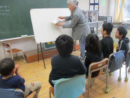 5日(水)は、牧先生によるお話会が行われました。パネルボードを使って、パネルシアターをした後、絵本を読んでくださいました。パネルシアターでは、子どもたちは、ねずみくんのお話を笑いながら楽しく聞いていました。興味のある本を読んでくださるので、みんないつも楽しみにしているお話会です。わくわくしながら先生の持ってきてくださる本を見ています。