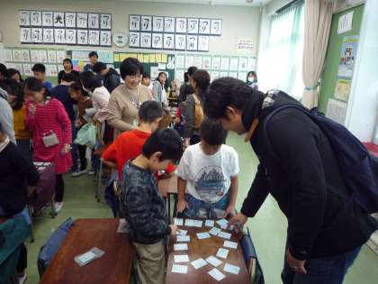 3年生の教科「日本語」の公開授業では、百人一首を行いました。