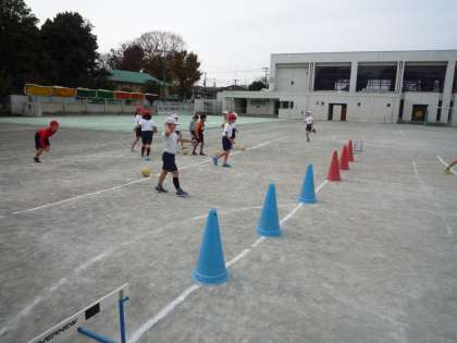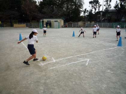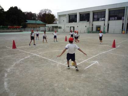 3年生の外体育では、ベースボール型ゲームとして「キックベース」を行っています。