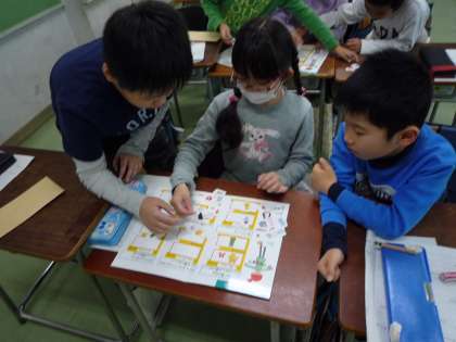 総合的な学習の時間に、プログラミング学習の一環として、アンプラグド学習をしています。