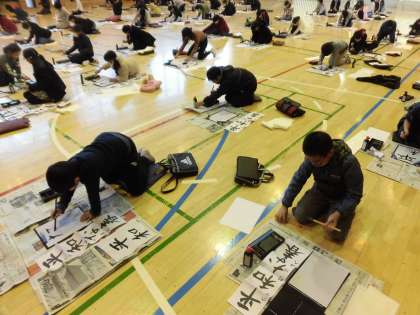 本日の3,4校時に6年生は席書会を行いました。