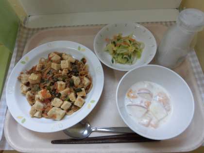 ☆今日はみんなの好きな『フルーツヨーグルト』です。ヨーグルトの乳酸菌には腸内環境を整えて免疫力を高める働きがあると言われています。インフルエンザも治す手助けが期待できます。今日は子ども達にヨーグルトの酸味とフルーツの甘味を味わって食べていただきました。