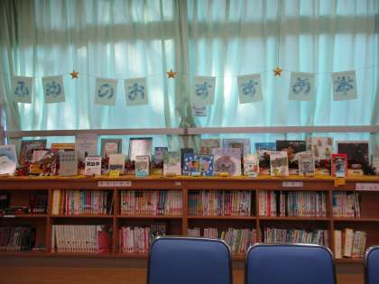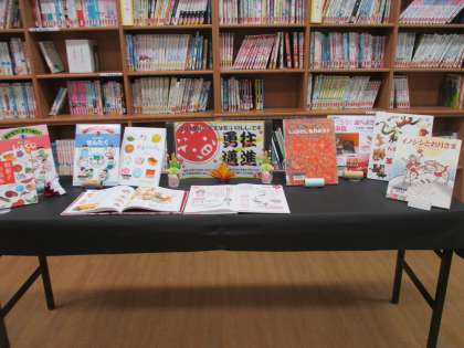また、図書館にも絵本を展示し、貸し出しもしています。「亥年」の本や「冬のおすすめの本」など手に取って読みたくなる本を集めて展示しているので、図書館にも来て、お気に入りの本を借りてください。