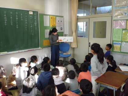 朝の時間に、3年生の全学級で保護者による読み聞かせがありました。