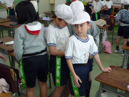 1回目は、教室でタグベルトの付け方を確認しました。