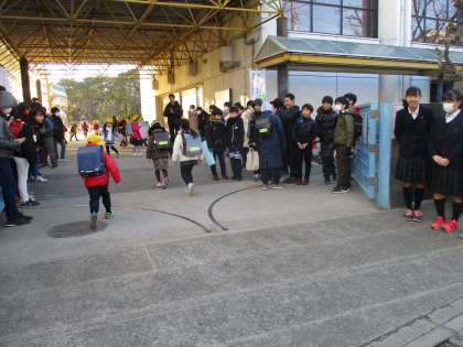 あいさつ週間最終日の本日は、6年生・4年生、保護者の方々、上祖師谷中学の生徒さんがあいさつの呼びかけをしました。正門、東門から元気のよい声が聞こえてきました。これからも、あ・い・さ・つの言葉をつなげた、あかるく・いつも・さきに・つたえようををスローガンにさらにあいさつの輪をつなげていきましょう。