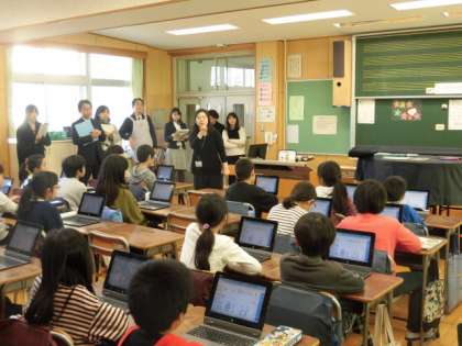 この日の5校時、4年2組の子どもたちが音楽「日本の音楽に親しもう」の研究授業に取り組みました。