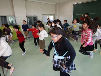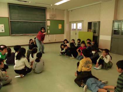 今日も、世田谷パブリックシアターをゲストティーチャーに招き、「いろいろなものになりきってみよう」の出前授業をしていただきました。