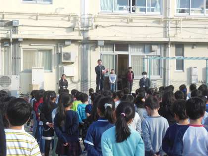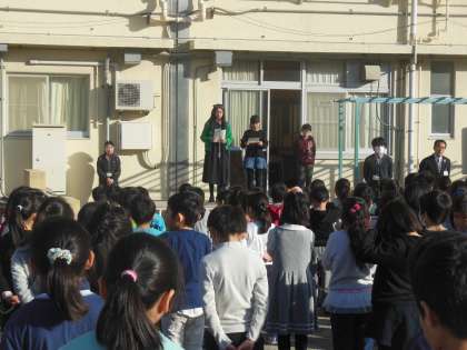 校長先生が4年生とセンター移動教室に出掛けたため、今朝の講話は副校長先生からでした。昨日行われた「中学生のつどい」では、上祖師谷中学校の生徒のスピーチが大変素晴らしかったそうです。自分の考えを大勢の人の前で伝えるためには、日頃の返事やあいさつからしっかりすることが大切だというお話がありました。