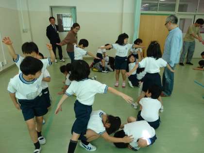 「みんなと協力したから作れた」「みんなとやったから楽しかった」と、友達と協働する楽しさを味わい、表現する気持ち良さを実感しました。