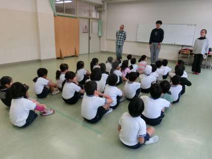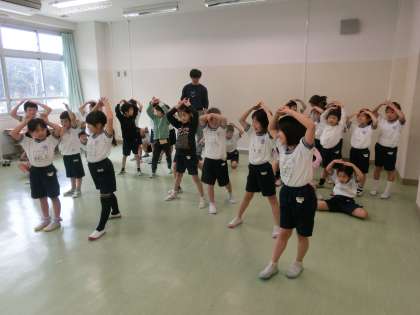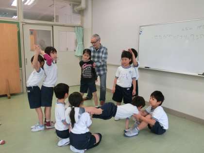 その後、絵本「ぶたのたね」の一場面を頭と心と体を使い最大8人で協力し合って表現しました。楽しい2時間を過ごすことができました。