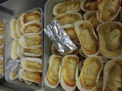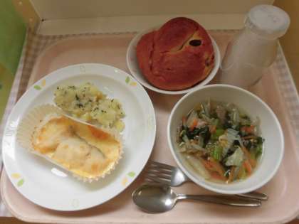 ☆今日の給食は『ホキのチーズ焼き』です。ホキは高たんぱく質、低脂肪の魚でクセが少なく食べやすい白身魚です。給食室では、子どもたちが食べやすいようにホキにチーズをかけてオーブンで焼きました。