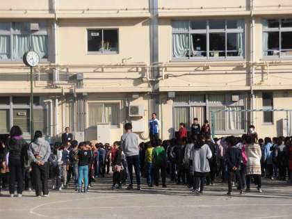 今日は雲ひとつない快晴でした。校長先生のお話は「命を大切に」。たったひとつの命を大切にしてほしいこと、なやみごとがあったら近くの大人に相談してほしいことのお話でした。最後に「限りあるたったひとつの命だから」の詩の紹介がありました。続いて、プラネッツバスケットボールチームのレインボーカップ優勝の表彰がありました。おめでとうございます。今週の生活目標は「天気のよい日は外で遊ぼう」です。今日は晴れていて暖かいので気持ちよく外遊びができそうです。