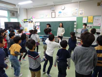 中休みに、5年生が「ジンギスカン」のダンスを教えに来てくれました。6年生を送る会で、全校でおどります。途中、ちょっぴり難しいところもありますが、これから一生懸命練習します。みんなで盛り上がれるよう、がんばって覚えます。