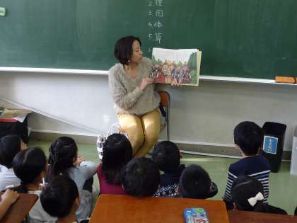 朝の時間に、3年生の全学級で保護者による読み聞かせがありました。