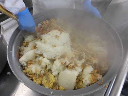 ☆今日は『ちらし寿司』です。寿司酢を作り炊いたご飯に混ぜました。炒り卵やちらしの具を混ぜ今が旬のいんげんを散らしました。彩り豊かな「ちらし寿司」の完成です!