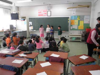 1組は学級会で「みんなであそぼう」の話し合いをしていました。