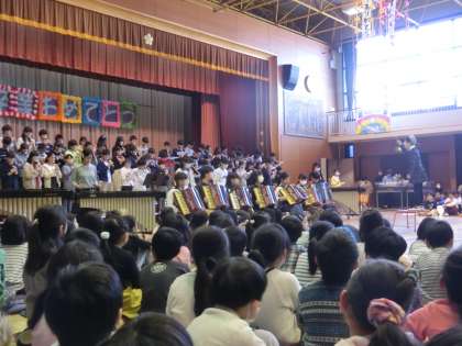 今日は6年生を送る会でした。代表委員の司会進行から始まった送る会。5年生がアーチを持ち、その他の学年は拍手で6年生を迎えました。