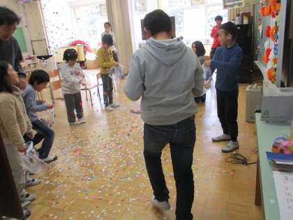 5日、つくし学級では、保護者の方もいらしてくださり、卒業・進級を祝う会が開かれました。先日、子ども達が計画して行ったお別れ遠足の写真を見て、振り返りをしました。さらに、音楽の学習した歌を歌い、すてきな歌声を披露しました。また、卒業生にお手紙を書いて渡したり、卒業生は、この1年を振り返ってのお手紙を読んだりしました。最後に卒業生が退場の際には、みんなで紙吹雪を散らしてお祝いをしました。なごやかな雰囲気の中、思い出に残る会が開かれました。