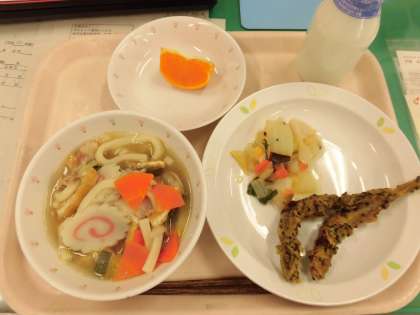 ☆今日の給食は『ししゃものごまカレー揚げ』です。ししゃもには、目の働き 皮膚や粘膜を強くする働きがあるビタミンAや骨や歯を丈夫にする働きがあるカルシウムが多く含まれています。今日はししゃもをカレー味の天ぷらにしました。