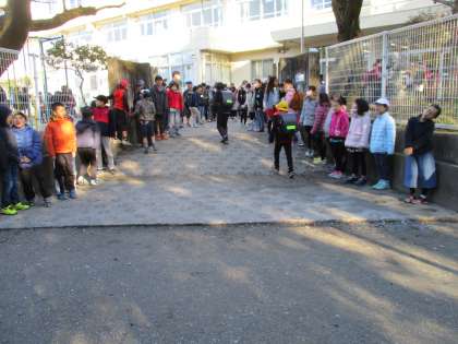 本日は、今年度最後のあいさつ週間、最終日でした。1年生が正門で、3年生が東門であいさつの呼びかけをしました。登校してくる子ども達もあいさつができるようになってきました。