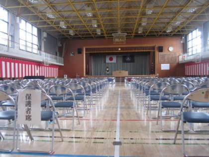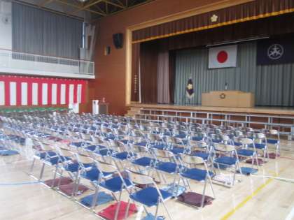 3月25日は、卒業式です。体育館の準備は整いました。25日は穏やかで暖かな天候が予想されます。学校の桜も咲き始めました。よい卒業式になることでしょう。