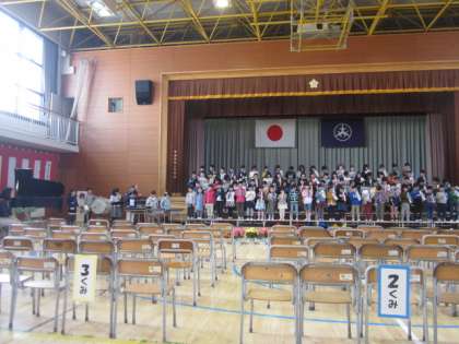 2年生は、入学式に1年生に聴かせる歓迎の呼びかけや歌、合奏の練習をしました。とても上手に仕上がりました。1年生は、きっと喜ぶことでしょう。1つ進級した子どもたちは頑張っています。