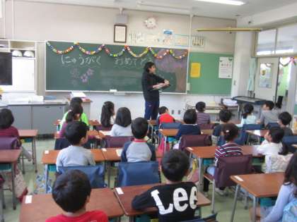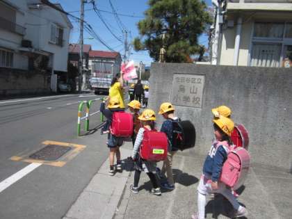 1年生は、初めて一人で登校です。朝は、6年生がお世話をしてくれています。授業も楽しかったようです。4時間目は校庭で元気よく遊びました。下校は、コースごと分かれて帰っていきました。小学校生活にワクワクドキドキの1年生です。