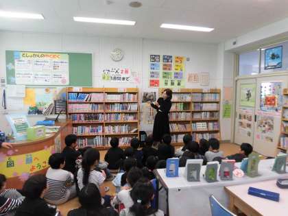 図書館司書の方に図書館利用のオリエンテーションを受けたり、国語の教科書に載っている「クマよ」という本の読み聞かせをしてもらったりして、図書館や読書に親しむひとときを過ごしました。