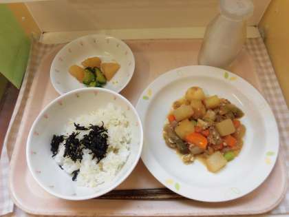 ☆今日は給食室で『ひじきのふりかけ』を作りました。ひじきは食物繊維や鉄分、カルシウムがたくさん含まれています。子ども達の成長にかかせない食べ物の1つになります。その他にごまも入っているので、御飯にかけるととても美味しくいただけます。