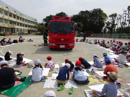 大きな紙に、ダイナミックに描いた消防車の絵を、楽しみにしていてください。