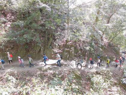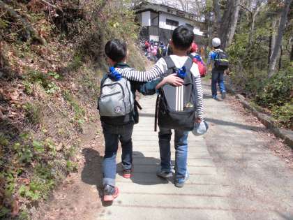 3・4年生とつくし学級が遠足で高尾山へ行きました。天候にも恵まれた遠足となりました。3・4年生の合同のグループを作って6号路を歩き、砂利道を歩いたり、沢を登ったり、階段を上ったりとても大変な道のりでした。4年生が「がんばれ」「危ないよ」とサポートしてくれたおかげで楽しく、安全に山登りができ、全員頂上まで登り切りました。