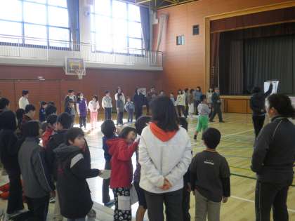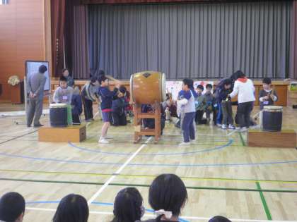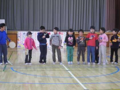 今日は、経堂小学校、明正小学校との3校交流会でした。みんなで歌を歌ったり、それぞれの学校で出し物をしたりしました。