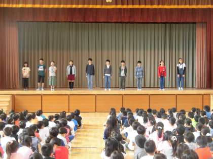 また、1年生は本日初めて児童集会に参加しました。きちんと並び、静かに話を聞く姿に、早くも学校に慣れてきた様子がうかがえました。