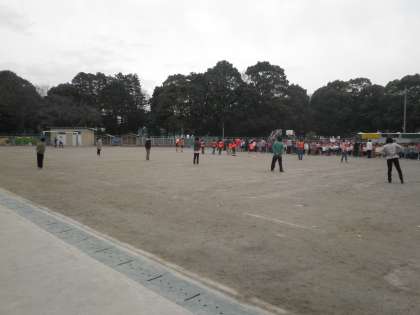 副校長先生とジャンケンです。全部勝つと、王様です。朝礼台の前に勝った子たちは